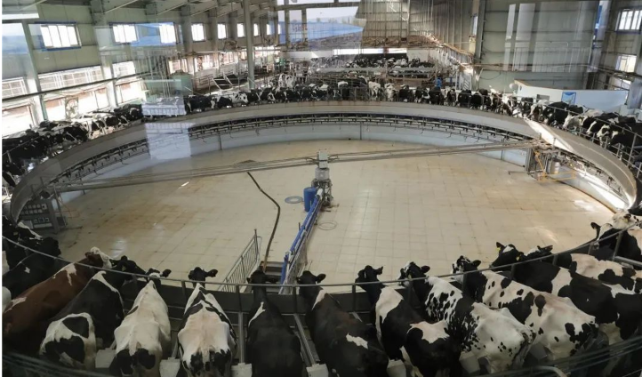 海高牧業(yè)正在運作的轉(zhuǎn)盤式擠奶設(shè)備。